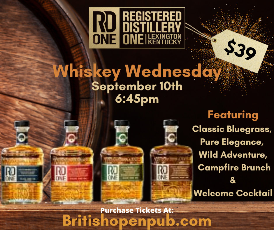 Join us in September for Whiskey Wednesday featuring Registered Distillery One (RDOne)!! As always, seating opens at 6:15pm, welcome cocktails are served at 6:45pm, and the program begins at 7pm!! Ticket price includes welcome cocktail, flight of 4 Whiskey tastes, and associated gratuity. As seating is very limited for this event, thank you for understanding that we are unable to refund tickets after Sept 9th. If you find yourself unable to make it after that time, please let us know and we will attempt to help offer your ticket to anyone who may be on our waitlist! Tickets may be purchased on our website under events. Look forward to seeing you!
